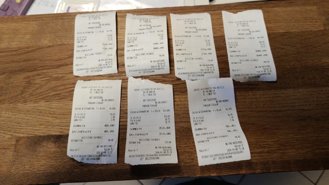 Wstawiam kilka ostatnich paragonów