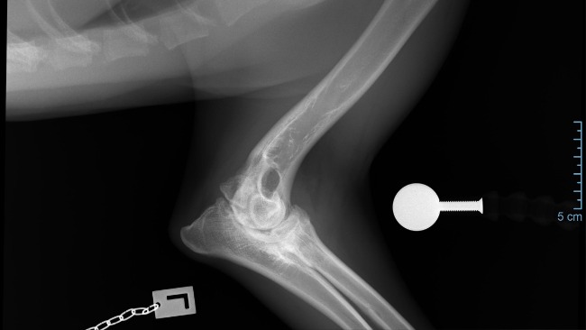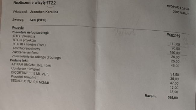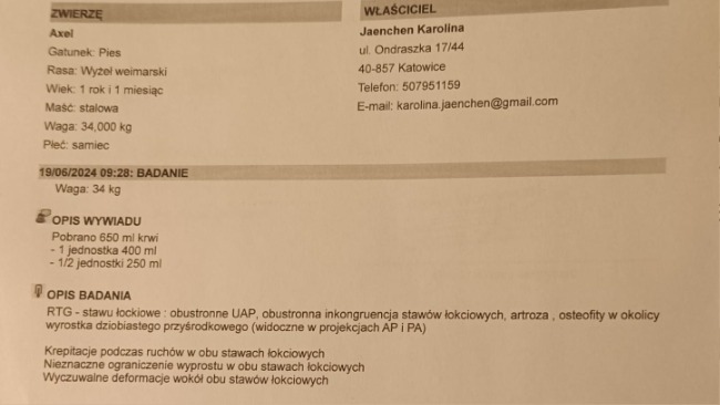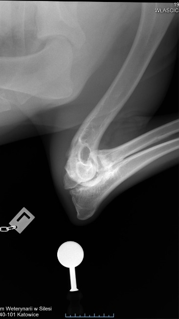 Późniejsze badanie RTG w katowickiej przychodni weterynaryjnej potwierdziło najgorsze obawy – stan łokci jest bardzo poważny, choć Axel nie wykazuje oznak bólu, co dziwi każdego specjalistę.