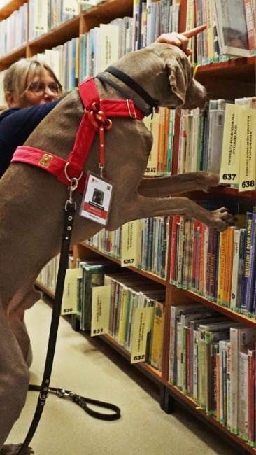 Axel jest także pracownikiem na 0 etatu w bibliotece miejskiej (przychodzi kiedy chce :) ) w dziale promocji (hau), gdzie zachęca czytelników do przychodzenia ze swoimi podopiecznymi - tworząc Bibliotekę -miejscem przyjaznym PUPILOM
