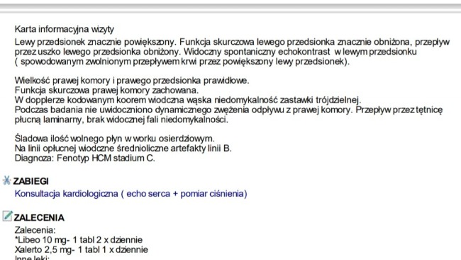 Diagnoza: HCM – kardiomiopatia przerostowa (niewydolność serca)