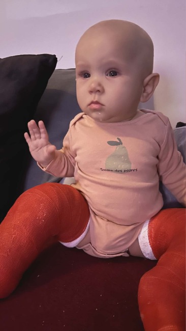 Niestety w zeszłym roku pojawił się nawrót, który bywa możliwy przy leczeniu stopy końsko-szpotawej. Ponownie zastosowano leczenie gipsami.