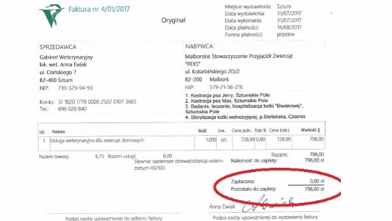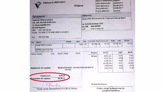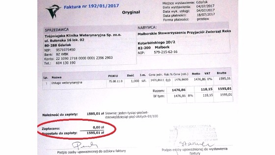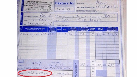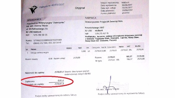To są faktury tylko za leczenie! Z całego serca i imieniu naszych podopiecznych BĘDZIEMY WDZIĘCZNI ZA KAŻDĄ ZŁOTÓWKĘ!