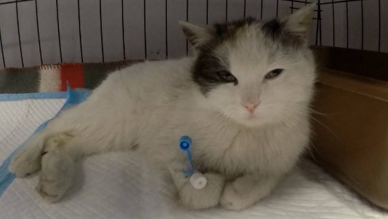 Alinka stara kotka, którą ktoś kiedyś wyrzucił bo była już niepotrzebna bo zachorowała. Wychudzona, zarobaczona siedziała przy oknach wielu mieszkań wołając o pomoc. Niestety była tylko przeganiana i bita. Trafiła do nas w stanie agonalnym. Po badaniach okazało się że ma nowotwór wątroby i nie ma już dla niej ratunku. Możemy leczyć ją tylko objawowo i dopóki nie cierpi pragniemy aby choć końcówkę swojego życia spędziła w ciepłym i kochającym domu.