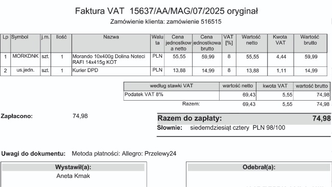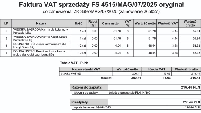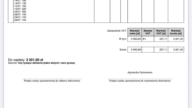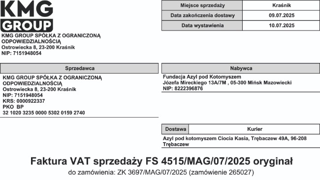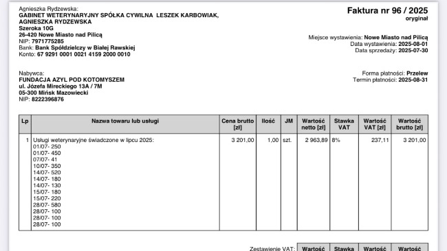 poniżej FV na które poświęciliśmy środki z tej zbióki: