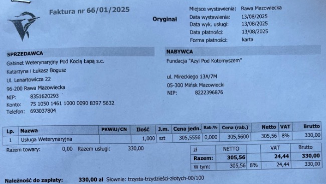 do tego zaczipowanie wszystkich sam koszt podstawowych szczepień i odrobaczenia i zaczipowanie 18 nowych podopiecznych to kwota 3200 zł do tego dojdą koszty leczenia.nie damy rady sami opłacić faktur - prosimy Państwa o pomoc
