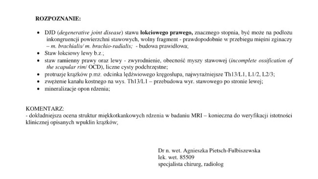 Ze stawów idealnych, nagle padła diagnoza - dysplazja stawu łokciowego HD-3.