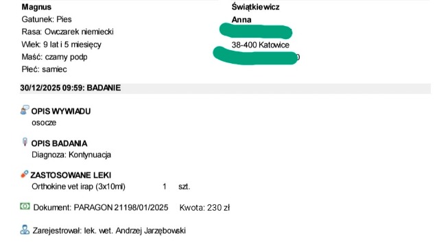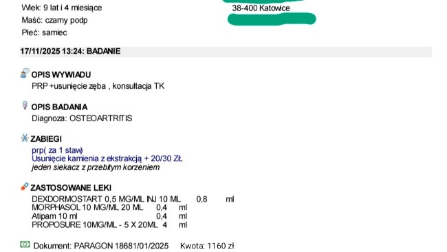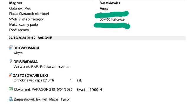 •Kontynuacja terapii osoczem u naszego weterynarza prowadzącego - muszę odnaleźć paragon, ale około 1000 zł
