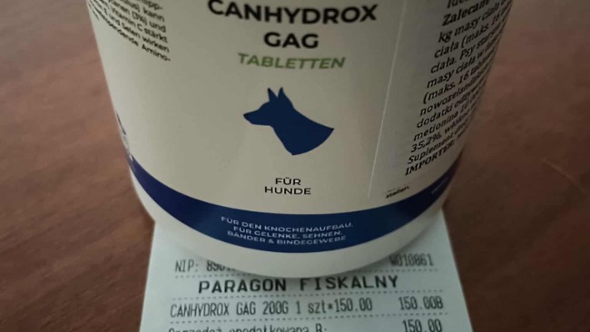 Oczywiście Magnus cały czas dostaje suplementy: MSM, olej z kryla, BioMarine 1140, olej z mikroalg, Canhydrox GAG, ale są one tylko dodatkiem w leczeniu.