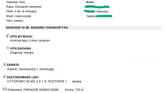 •16 kwietnia 2026 - jedziemy na konsultację ortopedyczną do Krakowa (Dr. Jan Dąbrowski) - 250 zł wizyta + koszty badań.