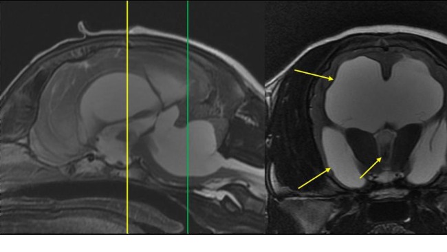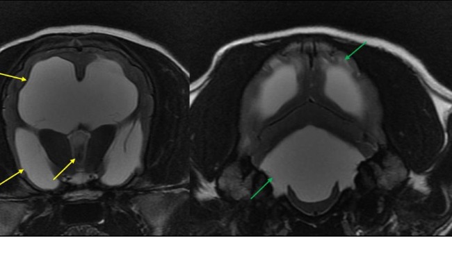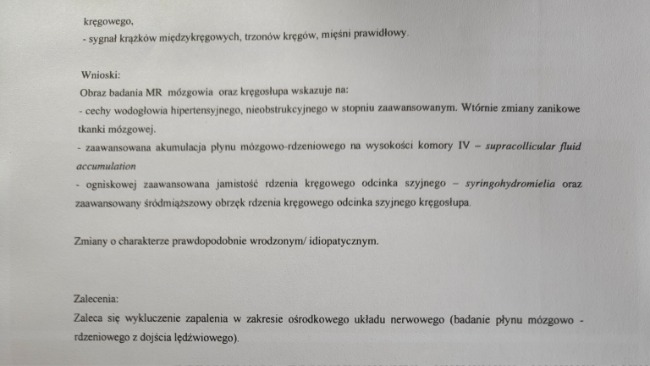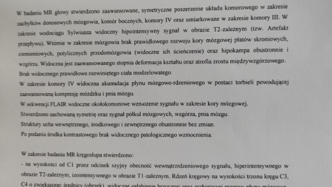 Po wizycie u neurochirurga i wykonaniu rezonansu stan szczeniaka spowodowany jest nagromadzeniem się płynu w czaszce, który uciska na nerwy powodując ból. Prościej choruje na wodogłowie.