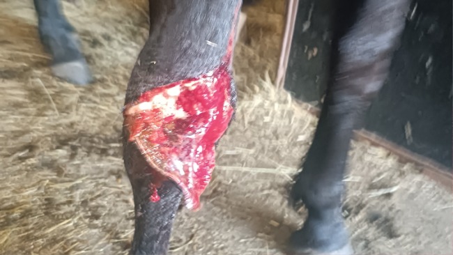 Zdiecia są drastyczne - ale już na szczęście jest u Nas i dzięki wielkiemu sercu, zaangażowanie Dr Eugeniusza Aparty zabezpieczona lekami i zszyta oraz zaszczepiona. Nigdy nie będzie koniem użytkowym doszło do bardzo poważnego uszkodzenia mieśnia prostownika(brakuje sporej jego części). Bardzo trudny przypadek, bo kładąc się czy nawet samym ruchem może zerwać szwy...