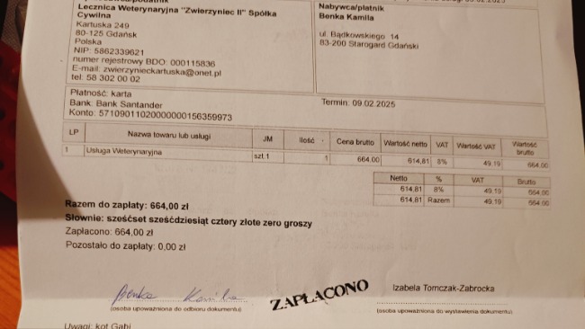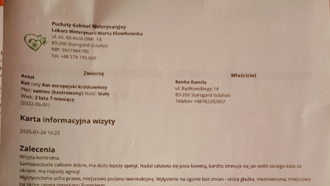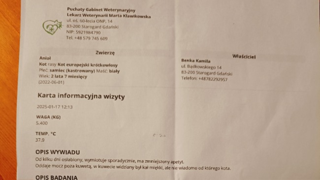 Z racji mojej trudnej sytuacji i tego że środki na leczenie Gabi nie zostały całkowicie wydane - muszę zawalczyć o zdrowie mojego kota Anioła. Konieczna jest diagnostyka oraz leczenie. Muszę mu pomóc mam już tylko jego. Wierzę że razem przejdziemy przez ten trudny czas.