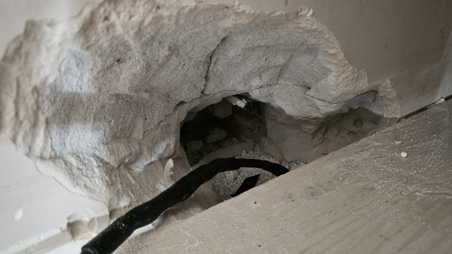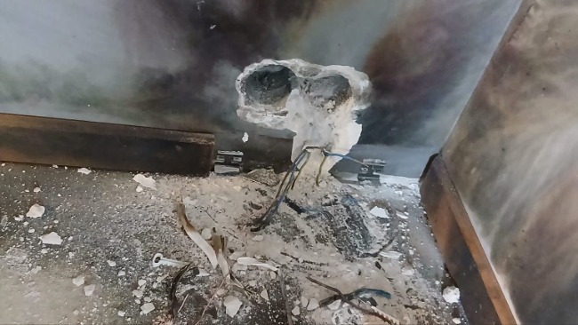 Zerwała się linia wysokiego napięcia, która przebiega prosto nad naszą działką i przewód 110 000V spadł bezpośrednio na nasze ogrodzenie. W jednej chwili doszło do potężnego zwarcia całej instalacji elektrycznej w domu. Wszystko, co było podłączone do gniazdek, eksplodowało. Huk, błysk i strach – tego nie da się zapomnieć. W garażu eksplodowała i zapaliła się skrzynka z bezpiecznikami. Garaż zaczął się palić. Trzeba było gasić pożar i ratować to, co się dało. Za oknem było widać ścianę ognia. Okazało się, że to palił się ług. Ranek odkrył inne zniszczenia. Betonowe słupki ogrodzeniowe eksplodowały i uszkodziły dachówkę powodując dziury w dachu.