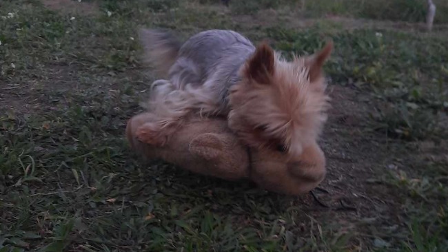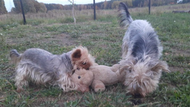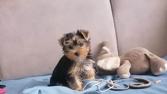 ↑Właśnie tak wyglądał ten mały brzdąc kiedy miał około trzy miesiące. Junior jest żywym i kochanym pieskiem. Uwielbia się przytulać, jego radość na widok mojej rodziny jest nie do opisania. Wylizał by każda osobę od stóp do głów. Junior żyje razem z trzema innymi yorkami - swoją rodzinką. Mamą oraz dwoma starszymi braćmi - Astrą, Camelem i Niko.