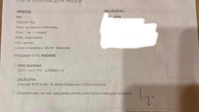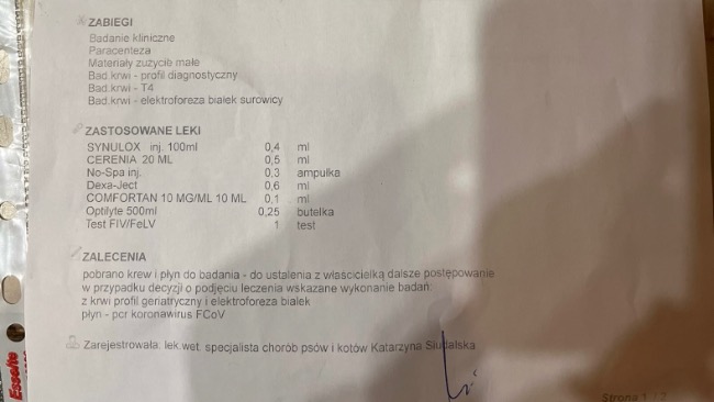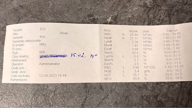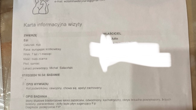 Niestety ta bajka została przerwana diagnoza Zakaźne zapalenie otrzewnej 😭 Od dwóch dni Edi czuł się gorzej, schudł więc Julia poszła z Edim do weterynarza. Tutaj nie było najmniejszych wątpliwości. W jamie brzusznej płyn. Wyniki badań fatalne. Hematokryt bardzo nisko. Żółty od wysokiego poziomu bilirubiny.