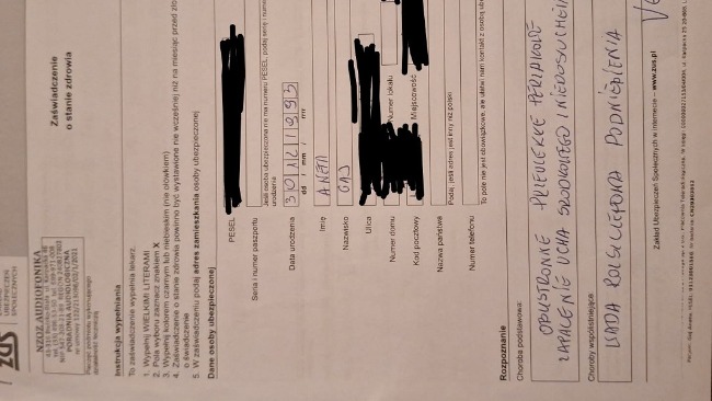 Termin operacji w ramach NFZ wyznaczono mi dopiero na jesień 2027 roku. To ponad dwa lata czekania w cierpieniu i niepewności. Dla mnie to może być wyrok bo choroba postępuje szybko i odbiera mi resztki słuchu z każdym miesiącem.