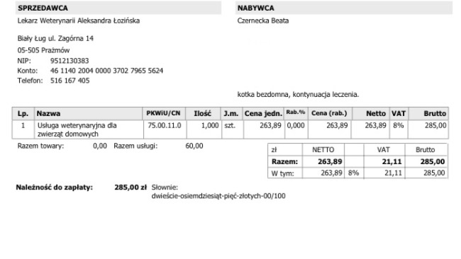 Zbieram na zapłatę faktury ciągle mam nowe koty pod opieką, ciężko mi samej z tym wszystkim.Będę wdzięczna za dołożenie się 5,10zł do faktury którą muszę zapłacić.