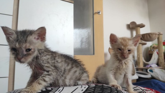Przebywają w domu tymczasowym gdzie otoczone są miłością i troskliwą opieką. Żywione są Convelance Support żeby miały siłę walczyć z choróbskiem.