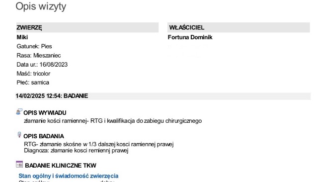 Po prześwietleniu w klinice okazało się że złamanie jest na tyle poważne iż będzie musiał przejść natychmiastową operacje aby mógł wrócić do sprawności.