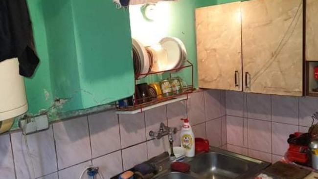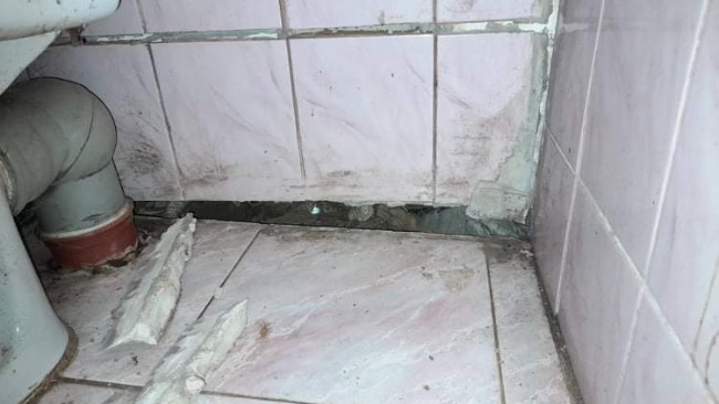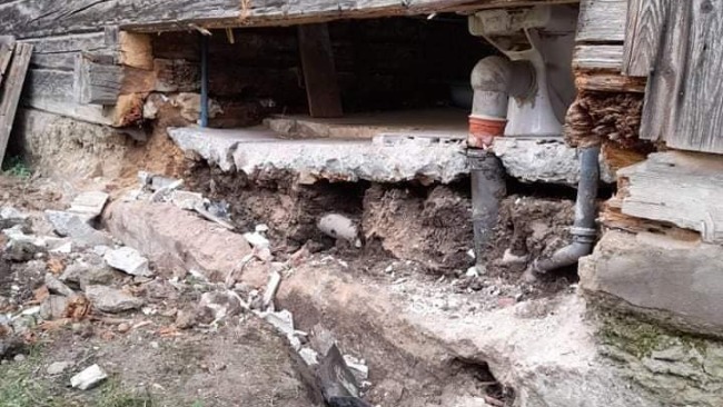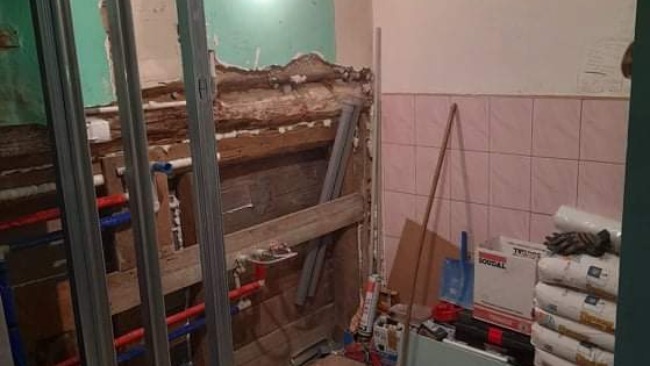 Na wskutek osiadania fundamentów posadzka prowizorycznej łazience stała się prawie równią pochyłą z popękanymi płytkami, zapadająca się wanną, po prostu niebezpieczna. Po odliczeniu wydatków na leki, żywność i bieżące potrzeby, rodzinie nie zostaje praktycznie nic, więc jakikolwiek remont jest dla nich nieosiągalny.