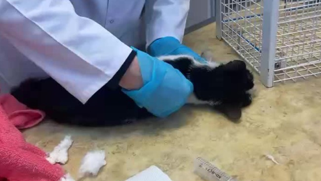 Ta mała kotka ma zaledwie pięć miesięcy. Została znaleziona wczoraj pod jednym z bloków w Pawłowicach. Ciągnęła ze sobą nóżki. Było oczywiste, że potrzebuje natychmiastowej pomocy.
