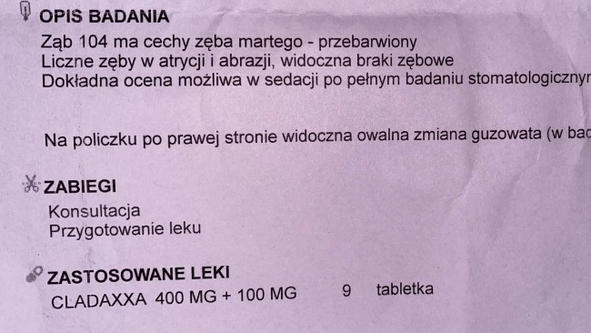 Aktualnie piesek jest na różnego rodzaju lekach, i czeka ją w styczniu operacja usuwania chorych zębów (w tym jednego kła), owalnej zmiany guzowatej na prawym policzku oraz leczenie zapalenia okostnej.