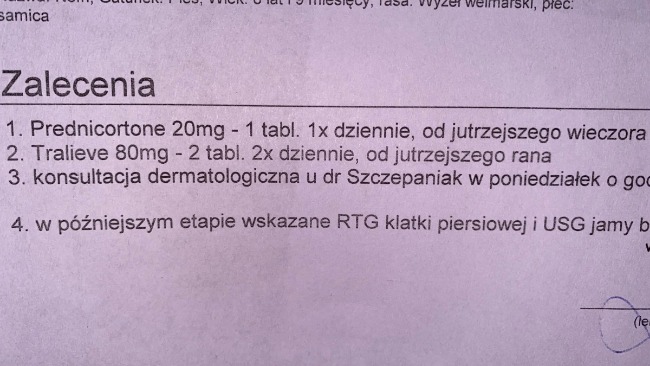 Nasz 9 letni piesek rasy wyżeł weimarski przeszedł szereg zabiegów oraz operacji w ostatnich paru miesiącach m.in wycinane pod pełną narkozą dwa tłuszczaki, leczone uszy spowodowane zapaleniem bakteryjno-grzybicznego oraz zabieg leczenia małych guzków podskórnych.