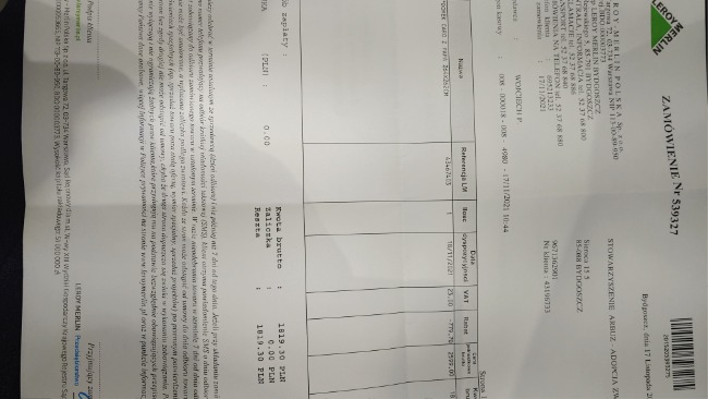 Ku naszej ogromnej radości Leroy Merlin dał nam sporą zniżkę i zamiast 2599 zł mamy do zapłacenia 1819.30.