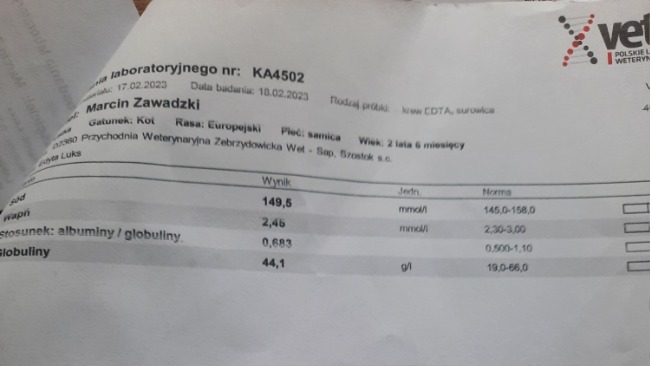 Leczenie jest bardzo kosztowne , każda wizyta u weterynarza to dodatkowe koszty , Łatka ma ciągle gorączkę , jesteśmy pod stałym nadzorem lekarzy.