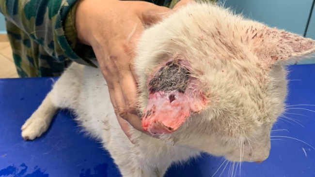 Zbiórka została założona na pomoc dla kota, który włóczył się po wsi i z krawaiącym uchem, sponiewierany do granic możliwości.