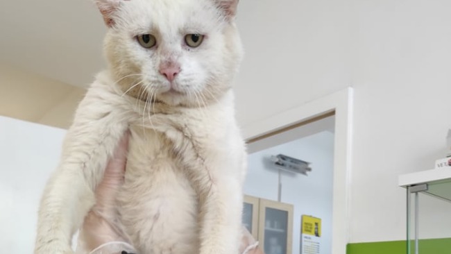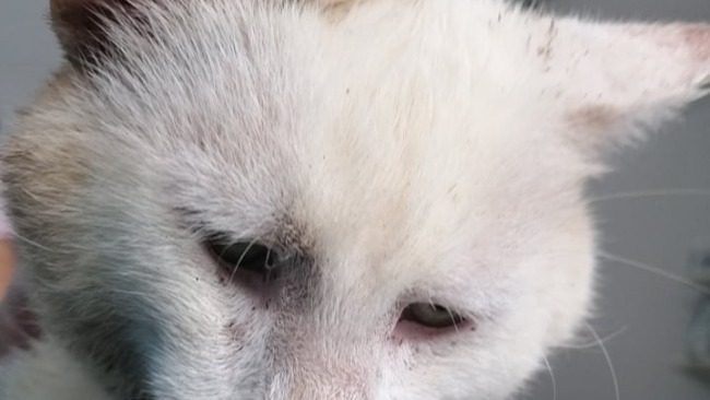 Pewnie kiedyś, gdy białasek był ładny, miał właściciela, ale dziś, kiedy kot wygląda jak obraz nędzy i rozpaczy, nikt się do niego nie przyznaje.