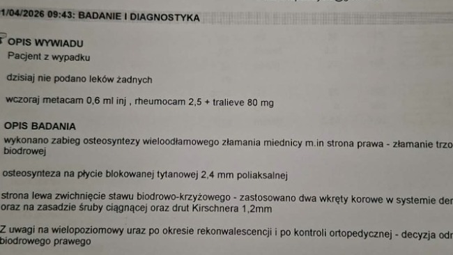 Potrzebujemy pilnej konsultacji ortopedycznej.