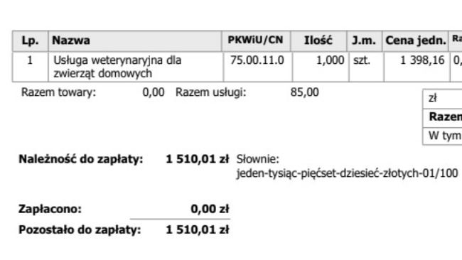 Faktury, których jeszcze nie zapłaciliśmy na dzień dzisiejszy opiewają na kwotę 30 753 zł, do tego dojdzie leczenie Frelki, Leczo i dalsze leczenie Nuki. Bardzo prosimy o wsparcie, bo zaczynamy tonąć w długach..