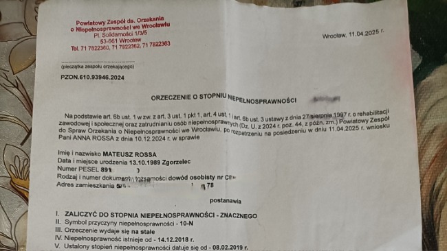 Mój syn został dotkliwie pobity przez nieznanych sprawców. Zwyrodnialcy bili po głowie, chcąc go zabić. Uszkodzili mu mózg do tego stopnia, że obecnie porusza się na wózku inwalidzkim ma paraliż prawostronny, jest w afazji motorycznej i ma padaczkę pourazową.