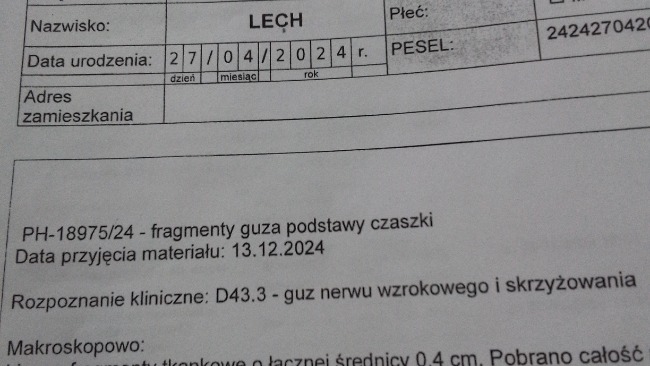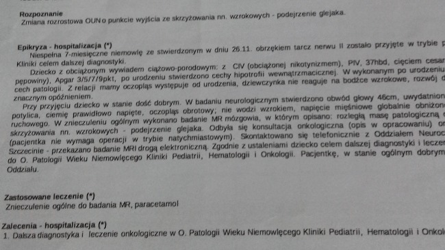 Moja córka ledwo co się urodziła walczy o życie choroba za takowala że nie widzi guz muzgu glejak jest nie wyleczalna choroba, przeszła już cztery operację sama się nie rozwija.non sto szpitalu jest zmęczona tym wszystkim płaczliwa nerwowa proszę o pomoc.