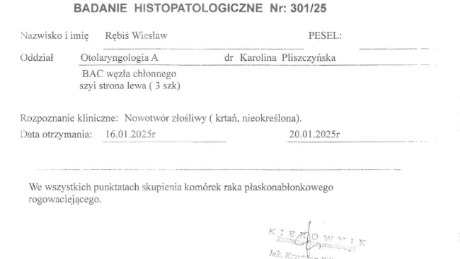 Bardzo serdecznie dziękuje Panu za tak duże wsparcie finansowe. Te pieniadze które Pan podarował pozwola temu człowiekowi pokryć dalszą część leczenia. Teraz 14 stycznia 2025 r. przeszedł kolejna operację usunięcia węzłów chłonnych szyi. 31 stycznia będzie odbiór wyników i dalsza walka o życie. Te pieniązki też bardzo pomogły na dojazdy do kliniki, na dożywianie i walke z tym od roku "nieproszonym gościem". Bardzo Panu dziekujemy w imieniu mojej mamy, bo to mojej mamy mąż z którym przeżyła 27 lat, również dziekuje w swoim imieniu. Życzymy Panu wszystkiego najlepszego i serdecznie dziekujemy za tak duże wsparcie.