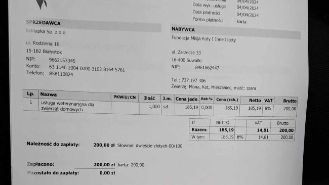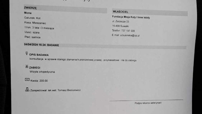 Mona byla na konsultacjach ortopedycznych, lekarz stwierdził, że złamanie dobrze się zrosło i nie ma potrzeby wykonywania zabiegu, z tego powodu zmniejszamy zbiórkę ❤️