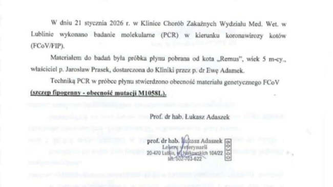 26 lutego przyszła kolejna diagnoza: Pepe również ma FIP.