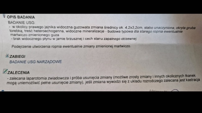 Póki co dostała antybiotyk,probiotyk i wzmacniacz przygotowywując ją do operacji.