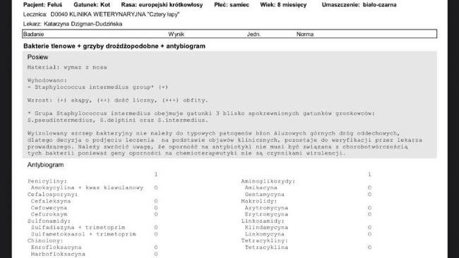 Niestety diagnoza okazała się bardzo poważna — stenoza gardłowo-nosowa. To choroba, która sprawia, że mój kot dosłownie dusi się każdego dnia. Ciągle się męczy, z nosa nieustannie leci mu gęsta wydzielina, głośno charczy i walczy o każdy oddech. Często nie może spać, nie ma siły się bawić ani normalnie funkcjonować. Z dnia na dzień gaśnie na moich oczach… Schudł już 1 kilogram i jest coraz słabszy.