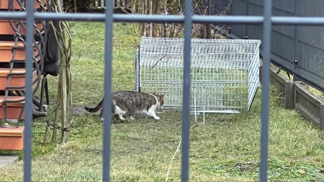 Aktualnie takową klatkę pożyczam( bez zdalnego sterowania- trzeba ciągnąć za sznureczek co wiąże się czasami z godzinnym staniem na mrozie, gdzie przy bardzo płochliwych kotach jeden mój ruch może je wystraszyć)