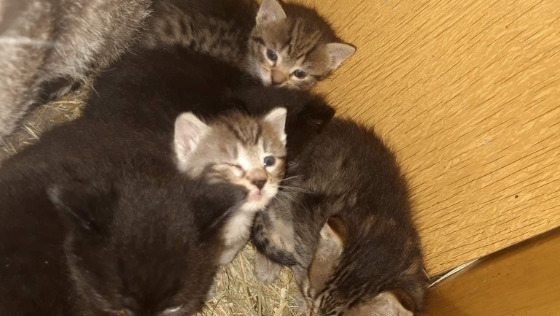 Niech maleństwa rosną . Mam nadzieje że ktoś je adpotuje i kocią mamę też. Dajcie lepsze zdjęcia kociej rodzinki.