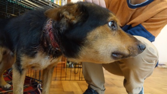 Psy poprzyczepiane krótkimi łańcuchami do czegokolwiek. Decyzja bez słów. Przynosimy klatki. Zabieramy je! Pierwszy pies - łańcuch wrośnięty w szyję - zabieramy z łańcuchem. Drugi pies to samo! Trzeci, czwarty i piąty też z łańcuchami nie do ściągnięcia! Wszystkie łańcuchy wrośnięte!