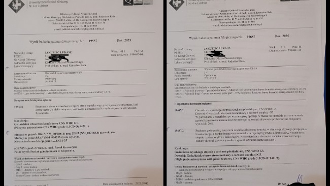 14 stycznia 2026 roku przyszła kolejna diagnoza, która wszystko zmieniła: gwiaździak wysokiego stopnia z cechami piloidalnymi (HGAP), CNS WHO grade 3.