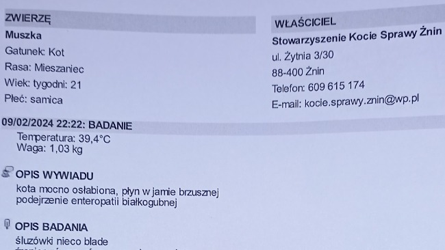 Niespodziewanie u Muszki zaczęły pojawiać się niepokojące objawy. Z dnia na dzień stała się apatyczna, unikała kontaktu, odmawiała jedzenia, traciła na wadzę i męczyła ją bardzo wysoka gorączka, która nie spadała po podaniu leków. Muszka przestała bawić się z innymi kotami, widać było, że coś jest nie tak, że cierpi. Powoli uchodziło z niej życie.