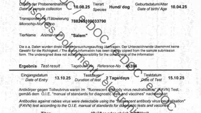 Chichi jest wykastrowana, zaszczepiona, ma testy serologiczne i może lecieć do europy w każdej chwili.