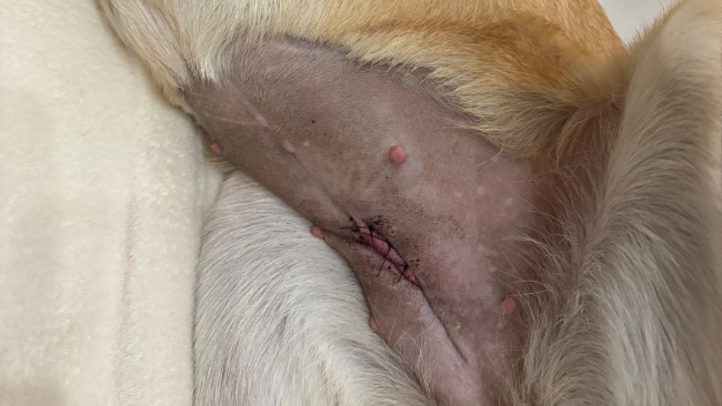 2. Ciężarna suka wykastrowana, zaszczepiona, zaczipowana i pojechała na tymczas