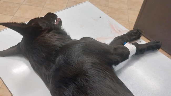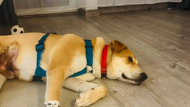 Hamzi po kastracji. Jest bardzo biedny😢 Szwy ma większe niż suczki po kastracjach. Jest fenomenem bo to jajko w jamie brzusznej się totalnie nie wykształciło. Bardzo ciężko było cokolwiek znaleźć. Ostatecznie została usunięta tkanka na zakończeniu nasieniowodu a Hamza odpoczywa