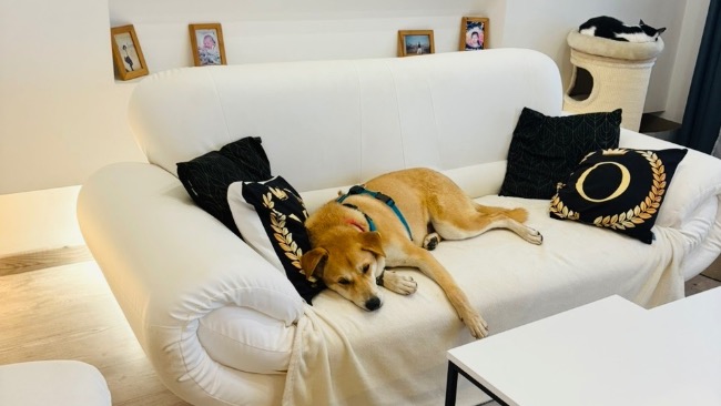 Sami ma już pozytywne testy i mógłby przylecieć ale historia opiekunki z guzem mózgu wstrzymała jego przylot. Ma więc czas na oswojenie sie z domowymi warunkami. Nie mam też dobrego tymczasu w polsce. Mieszkam w mueszkaniu na 3 pietrze bez windy😭