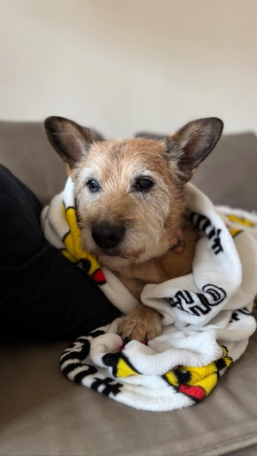 Gino to senior ze smutną historią - swoje najlepsze lata spędził na łańcuchu, bez budy, z pustym brzuszkiem i bez kochającego człowieka. Jego los odmienił się, gdy w wyniku interwencji trafił do Stowarzyszenia Psi Głos, a po wielu kolejnych miesiącach, zobaczyłam jego zdjęcie na portalu z ogłoszeniami. Około 10-letni pies, wymagający dużo pracy, diagnostyki, który nigdy nie przebywał w mieszkaniu - to nie jest pierwszy wybór ludzi szukających przyjaciela rodziny. Gdy zobaczyłam go na żywo, wyglądającego jak kupka nieszczęścia (ale bardzo lgnącego do człowieka), wiedziałam - że albo ja, albo nikt. I tak, w 7 listopada 2021 roku z nieskrywaną zazdrością Pixie Dixie przywitała w domu swojego nowego brata.
